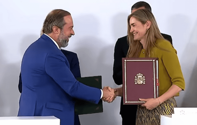 - Secretária de Estado e do Comércio, Amparo López, e ministro de Minas e Energia, Alexandre Silveira, firmam o memorando de entendimento entre o Ministério da Economia, Comércio e Empresa e o Ministério da Transição Ecológica do Desafio Demográfioco do Reino da Espanha e o Ministro de Minas e Energias da República Federativa do Brasil no âmbito dos minerais críticos