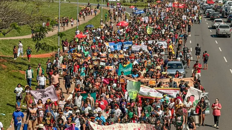 Contra o veneno e a morte nos rios: marcha indígena no DF exige fim da mineração em seus territórios